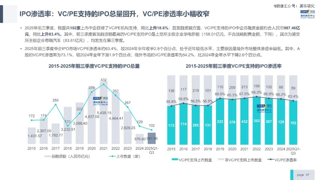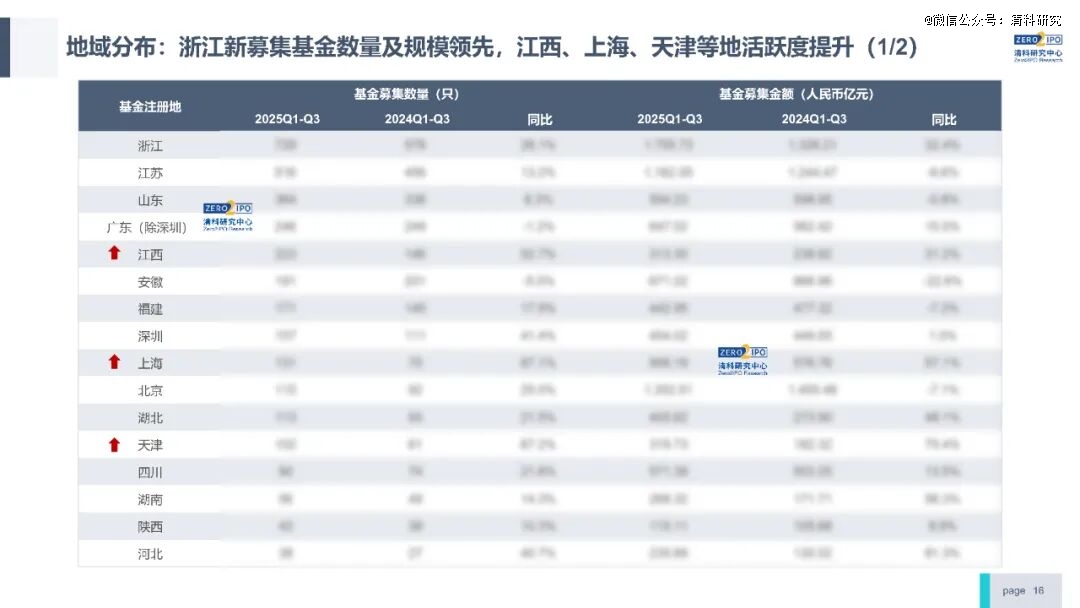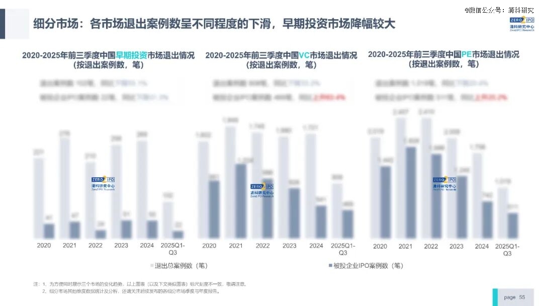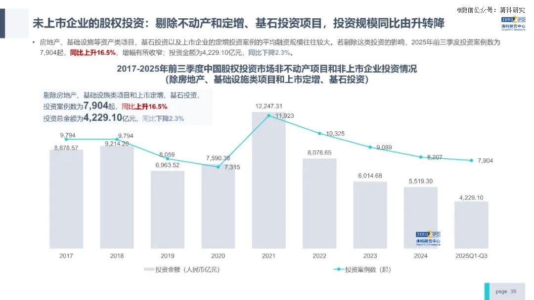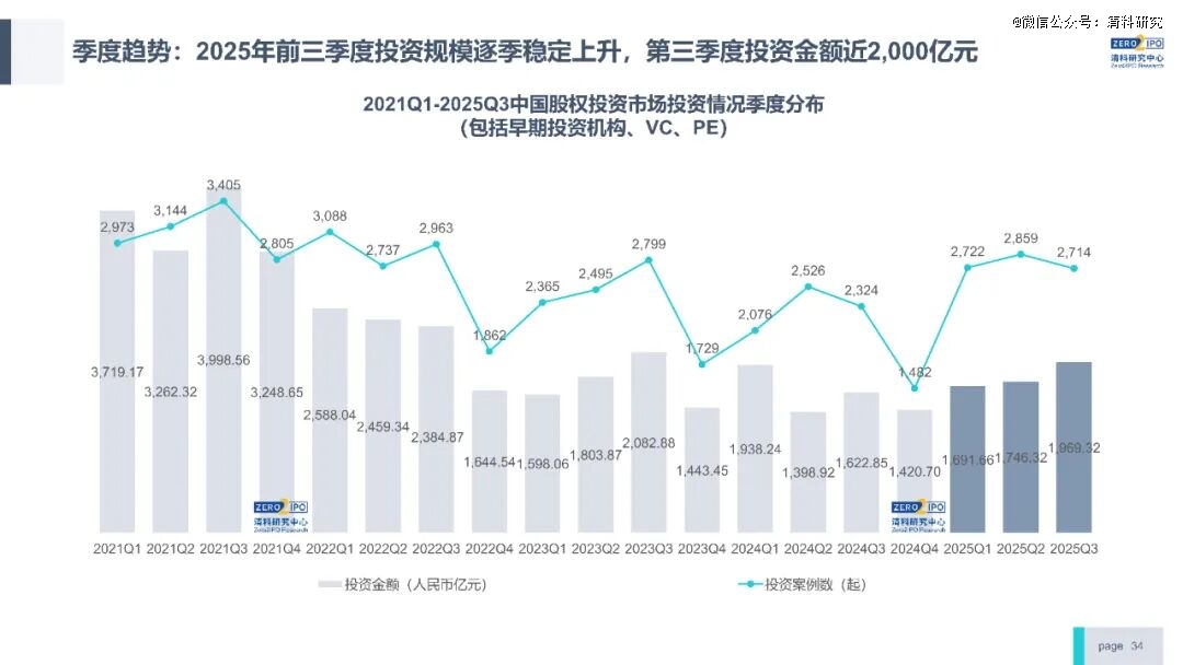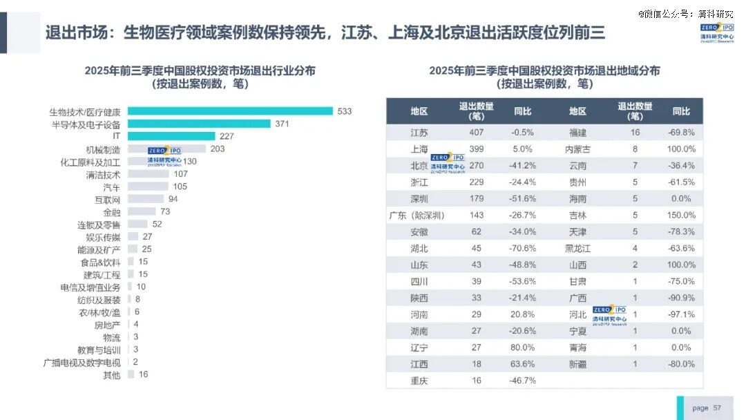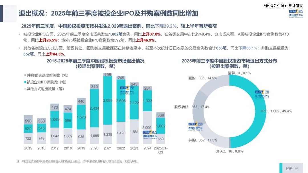 退出方面,在IPO及并购市场回暖推动下,被投企业IPO及并购退出案例数同比增加。据统计,2025年前三季度共发生2,029笔退出案例。其中被投企业IPO案例数为1,002笔,同比上升37.8%;并购退出案例数合352笔,同比上升84.3%。